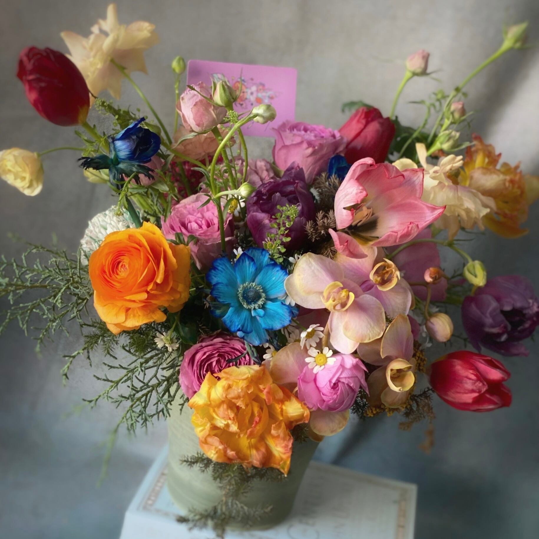 お花は生もののため、季節やその日の市場の状況によって手に入るものが違います。花材の指定、全く同じもののご用意はできかねますので、ご了承くださいませ。