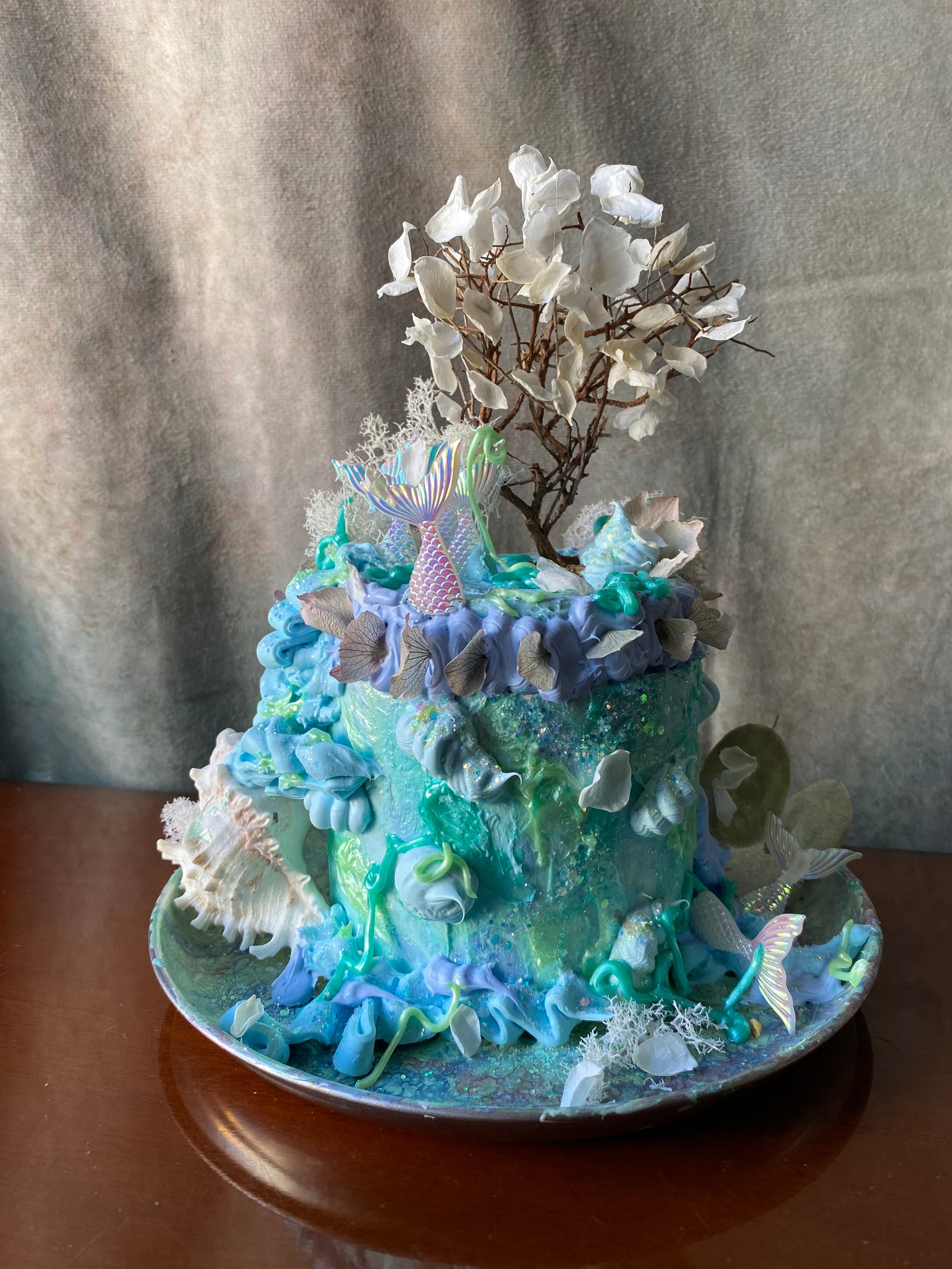 ケーキとお花が融合したアート作品になります。
