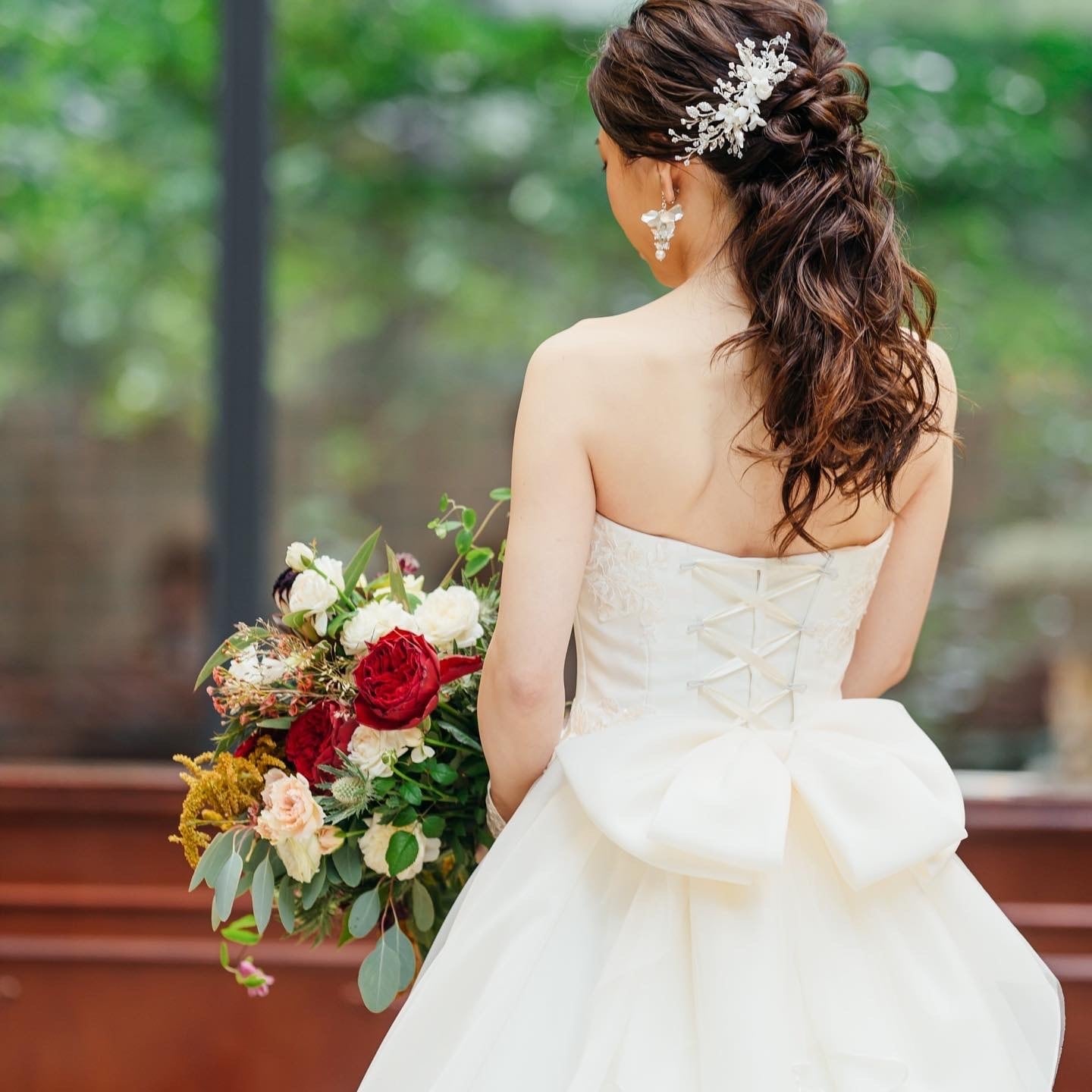 お伺いした内容から、おふたりの雰囲気、お召し物、髪の色、メイク、身長などに合わせて、 イメージにあうその空間にあわブーケ・ブートニア・装飾をご提案いたします。